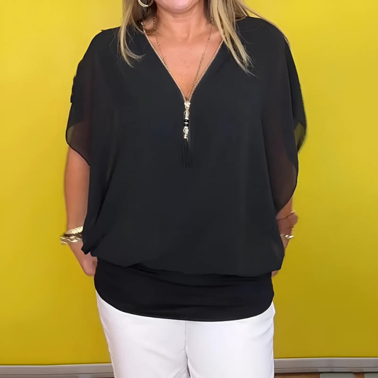 Cool Komfort I Hver Bevægelse! Denne top er fremstillet af materiale i høj kvalitet og tilbyder en perfekt blanding af blødhed, åndbarhed og holdbarhed. Den holder dig kølig, tør og komfortabel – selv på varme, travle dage. Det lette stof falder smukt og giver dig et elegant look uden anstrengelse....
