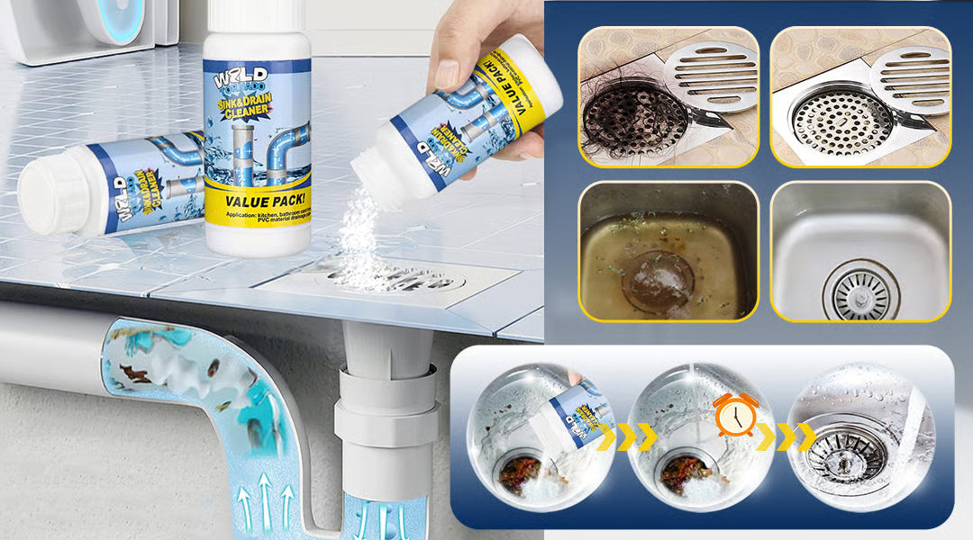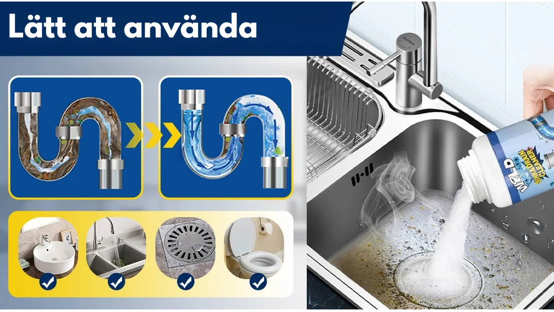 1️⃣ Hæld den anbefalede mængde i afløbet