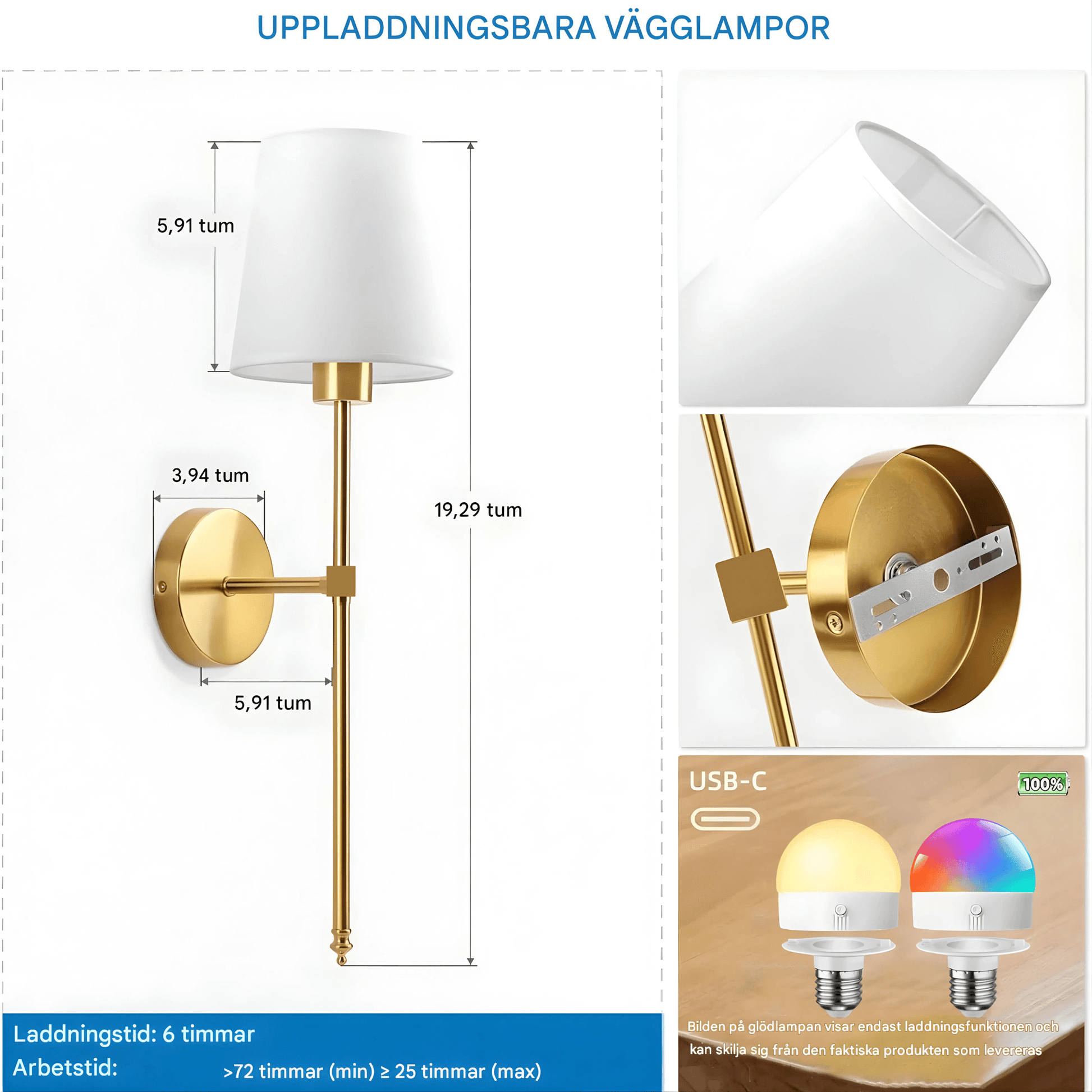Det indbyggede 2000 mAh-batteri kan oplades via USB-C og bruges trådløst i længere perioder, hvilket gør det muligt at placere lampen frit – selv dér, hvor der ikke er adgang til en stikkontakt.