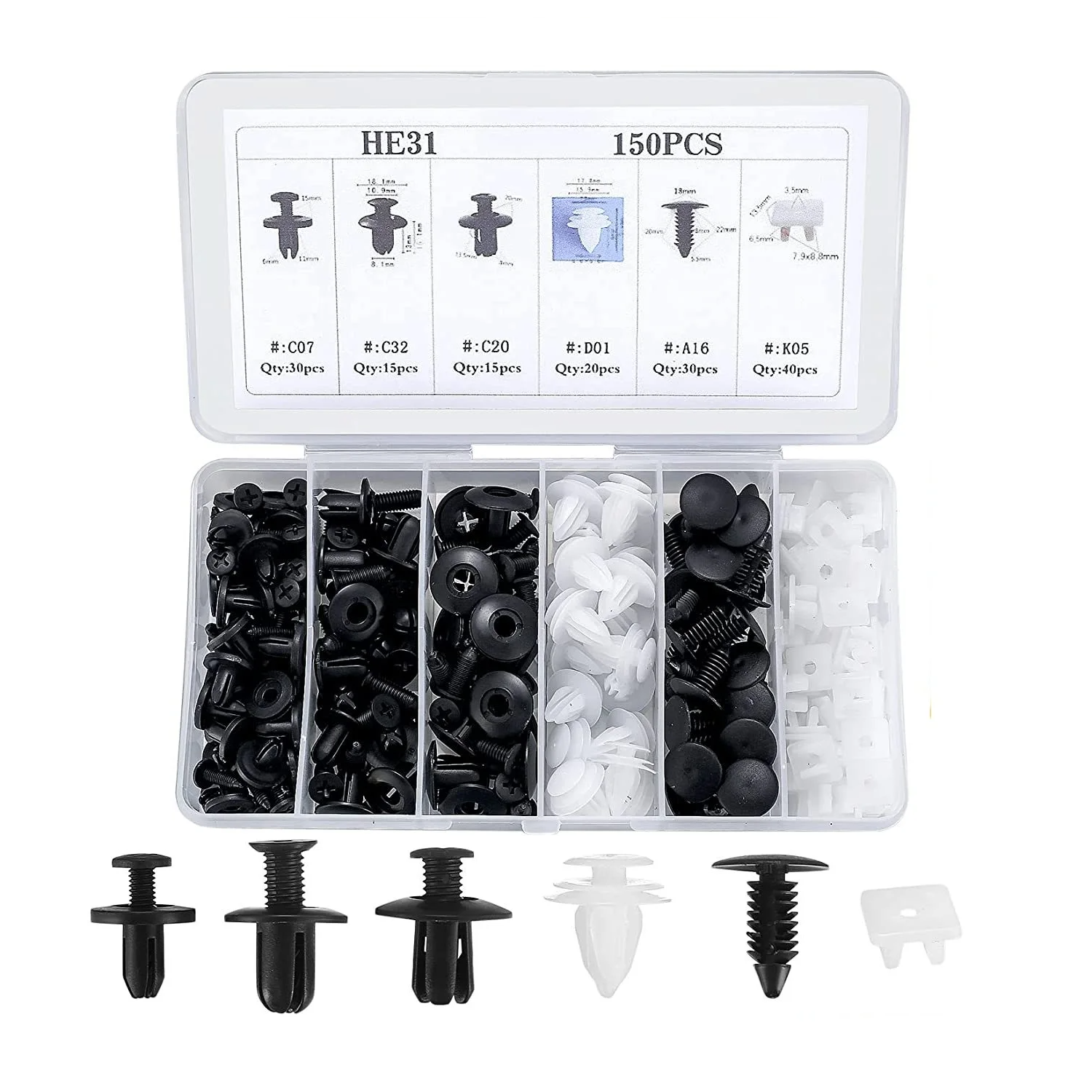 Disse klips fås i 6 forskellige størrelser og er designet til universel brug i forskellige køretøjer. De er kompatible med biler, lastbiler, motorcykler, busser, tog, autocampere og endda fly. Mange bilmærker fungerer problemfrit med disse klips.