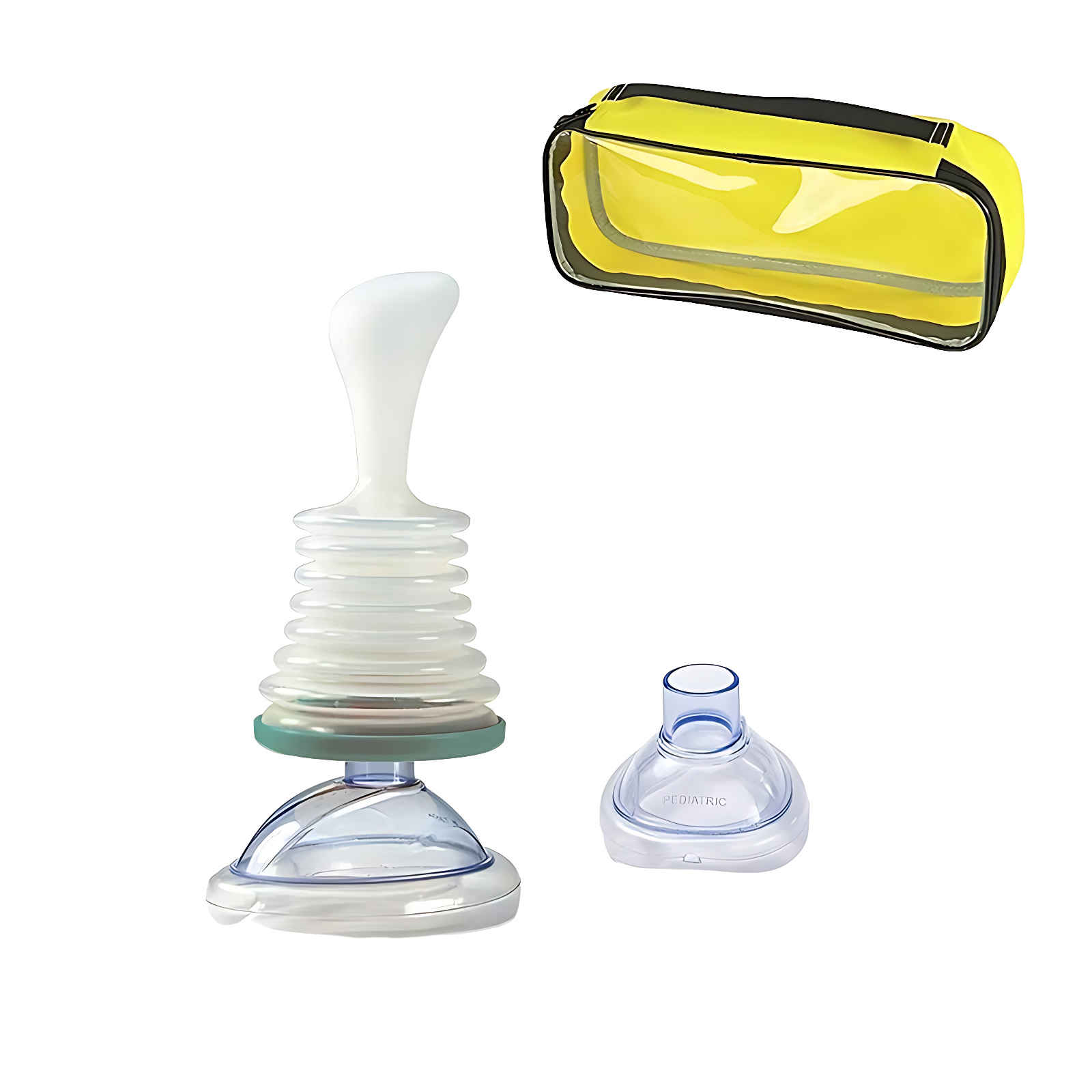 | Pakke Inkluderer | 1x AirwayUnblocker-Sæt (1x Gul Taske, 1x Håndtag, 1x Maske Til Voksne Og 1x Maske Til Børn) |