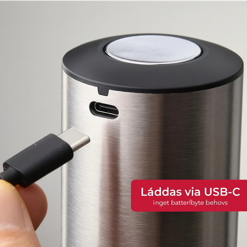 Den drypfri hældetud giver en jævn og kontrolleret stråle, som minimerer spild. Røret i rustfrit stål er hygiejnisk og holdbart, og USB-opladning gør enheden praktisk at bruge igen og igen. Passer til standardflasker med rødvin, hvidvin, rosé og også mousserende vin.