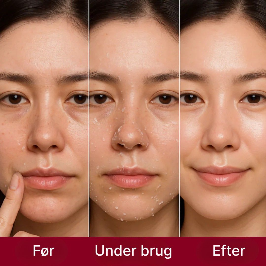 Urenheder, sorte prikker og døde hudceller fjernes skånsomt, samtidig med at din hud bliver intensivt næret og fugtet.