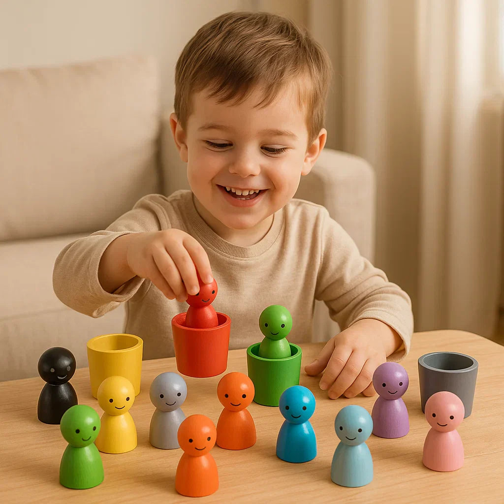 Montessori farvesorteringsspil i træ med bægre – Fremmer tidlig læring på en legende måde!