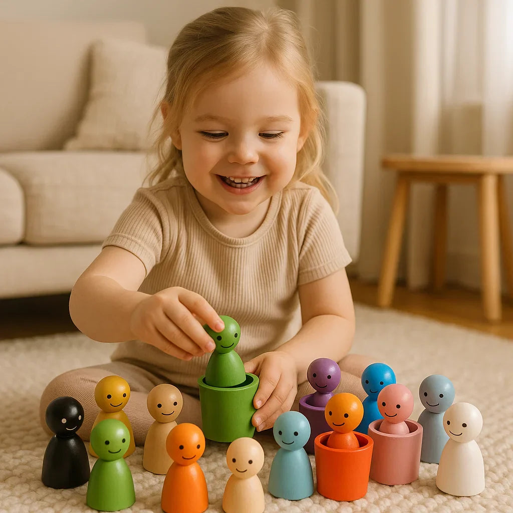 Montessori farvesorteringsspillet i træ med bægre er en vidunderlig måde at introducere børn til farver og former på en legende og pædagogisk måde. Med sine farverige bægre og søde figurer støtter dette spil den kognitive udvikling og træner finmotorikken. En perfekt legetøj til kreativ og udviklingsfremmende læring derhjemme eller i børnehaven!