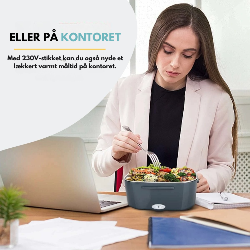 Den kan bruges både med stikkontakt og biladapter, så du kan nyde varm mad på arbejdet, på vejen eller i pausen. Sig farvel til kolde rester og take-away – og goddag til frisk, hjemmelavet mad.