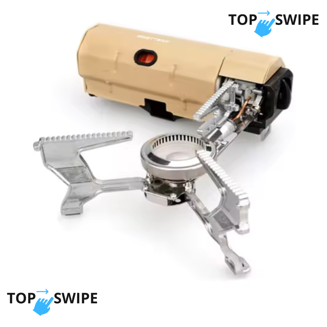 Vores KampVlam har en automatisk sikkerhed ved højt tryk og en skridsikker underside. Rillerne på grydeholderen sikrer stabilitet. Brug brænderen kun i godt ventilerede områder eller udendørs.