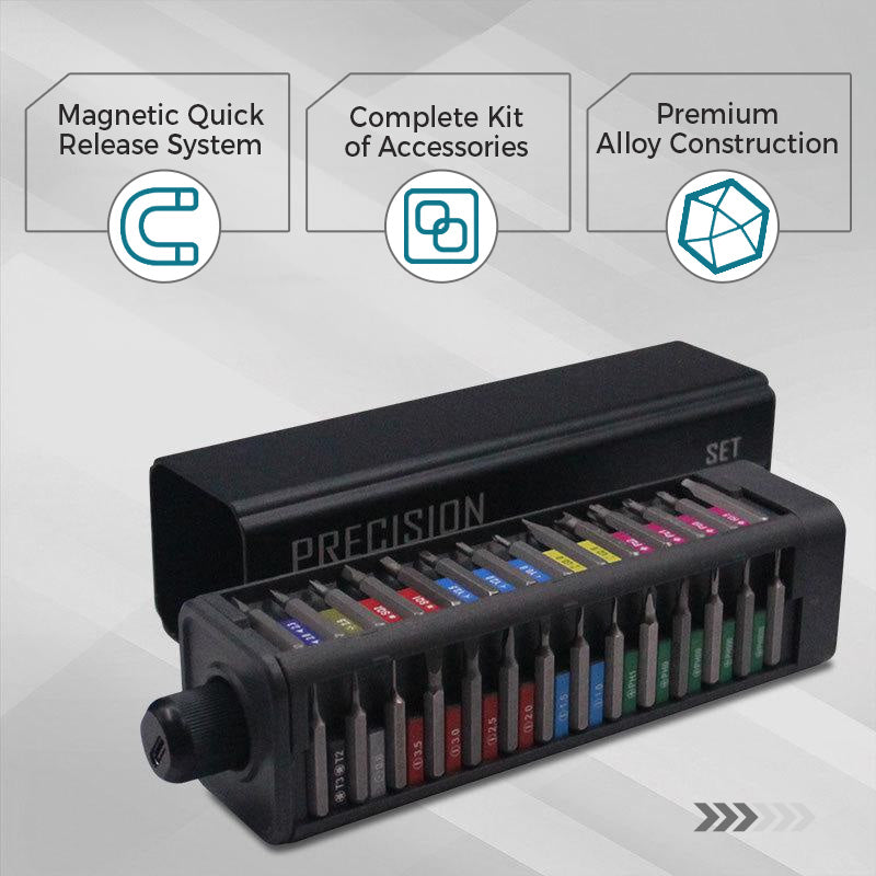 Trykknapsdesignet giver dig direkte adgang til bits, mens interne markeringer holder alting organiseret. Ikke mere roden i rodede værktøjskasser – alt forbliver pænt opbevaret og klar til brug.