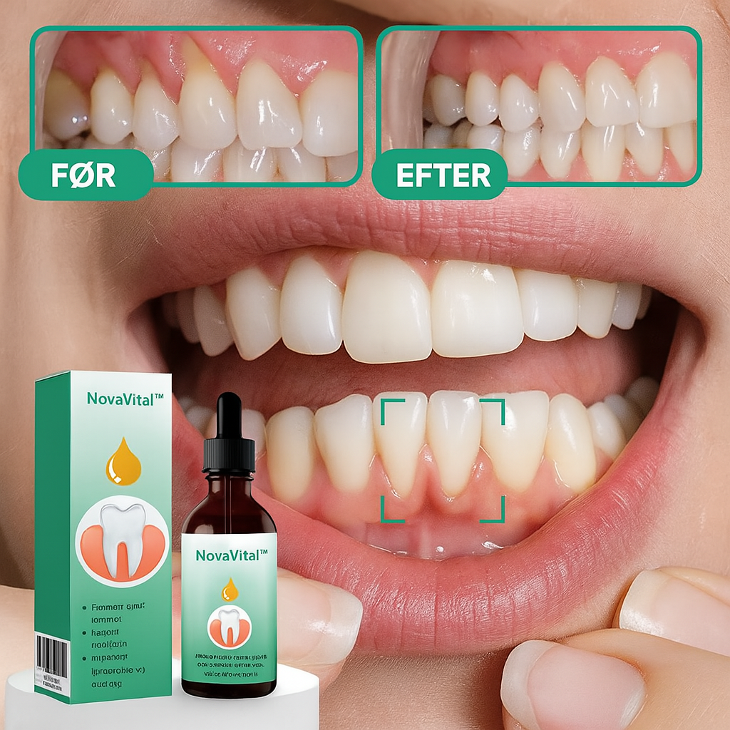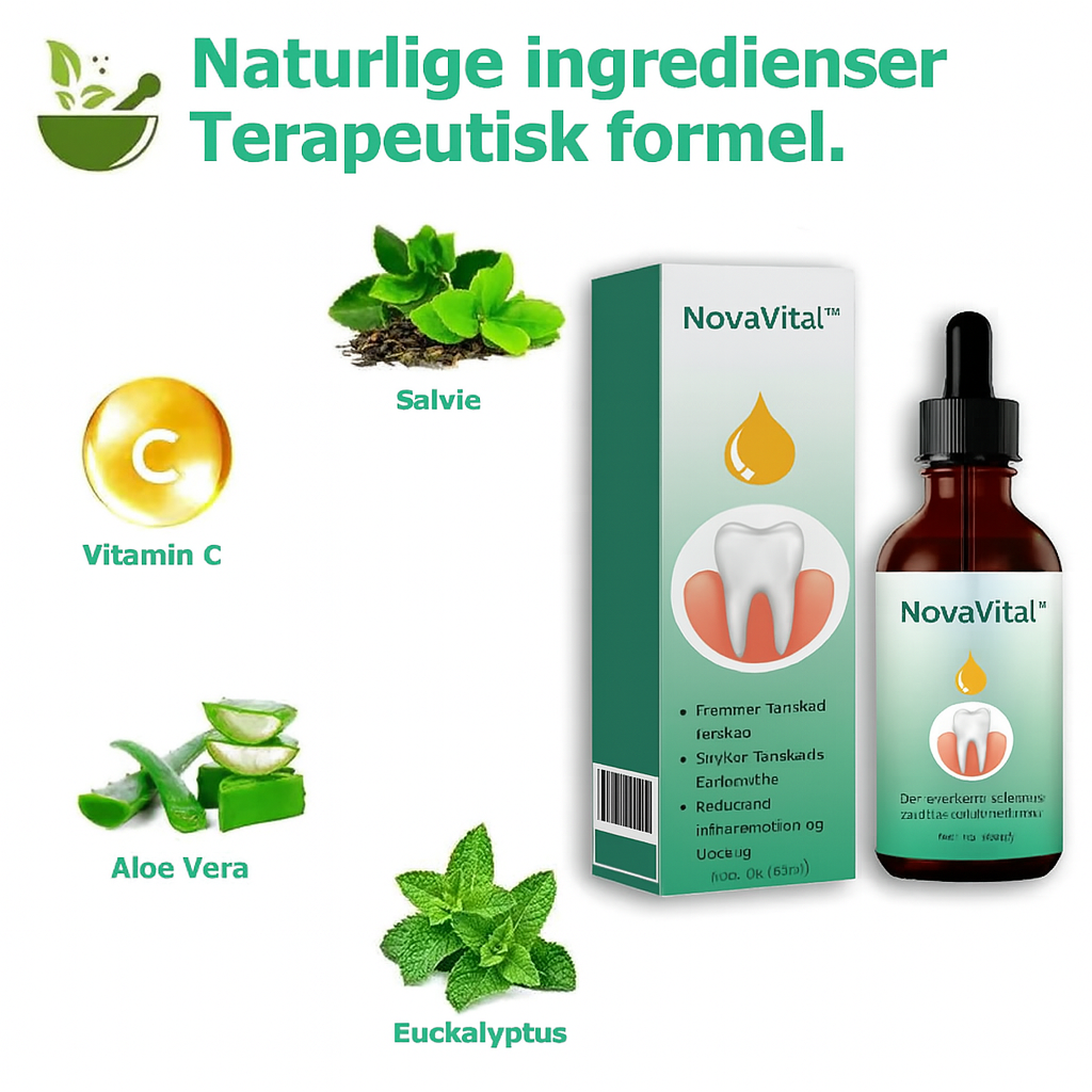 NovaVitals™ er en effektiv løsning udviklet til at berolige, styrke og regenerere tandkødet. Den naturlige sammensætning fremmer helingsprocessen allerede fra første brug.