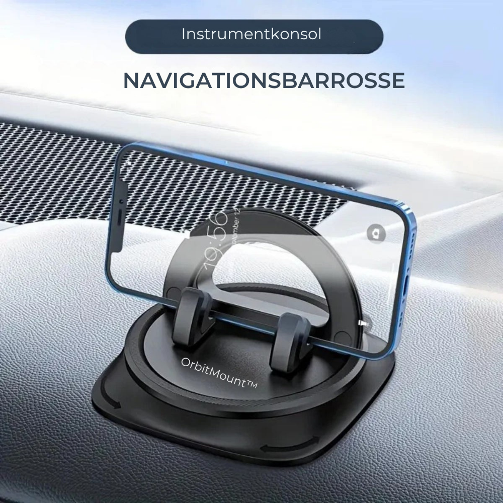 OrbitMount™ kan placeres på forrude, dashboard eller skrivebord, præcis hvor du ønsker. Den stærke konstruktion absorberer rystelser og holder mobilen fast – selv på ujævne veje. Det er frihed i bevægelse og sikkerhed på farten, samlet i ét elegant design.