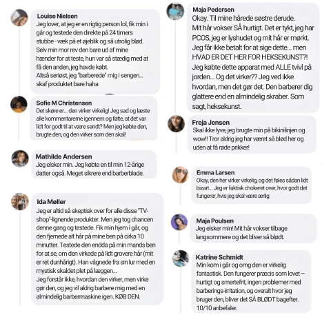 "Når jeg siger, at jeg lige har oplevet den bedste barbering i mit liv, så lyver jeg ikke. Barberede tørt og havde ingen barberskrammer, ingen oversete områder, silkeblødt – jeg smider mine barberblade ud. Den virker til at være så vellavet!"