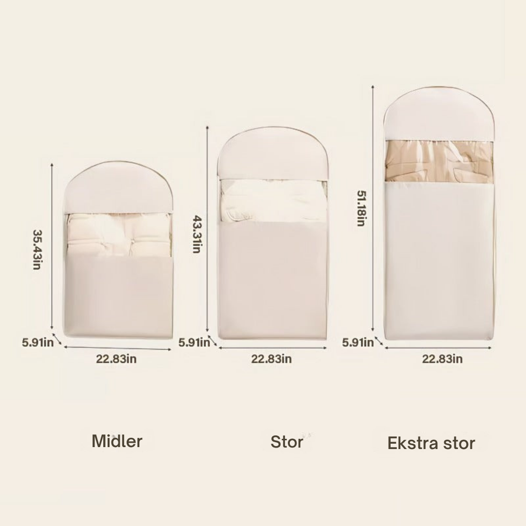Beskytter effektivt dine tøj mod rynker, støv, dyrehår og fugt. Den komprimerer nemt op til 40 % af pladsen uden behov for støvsuger.