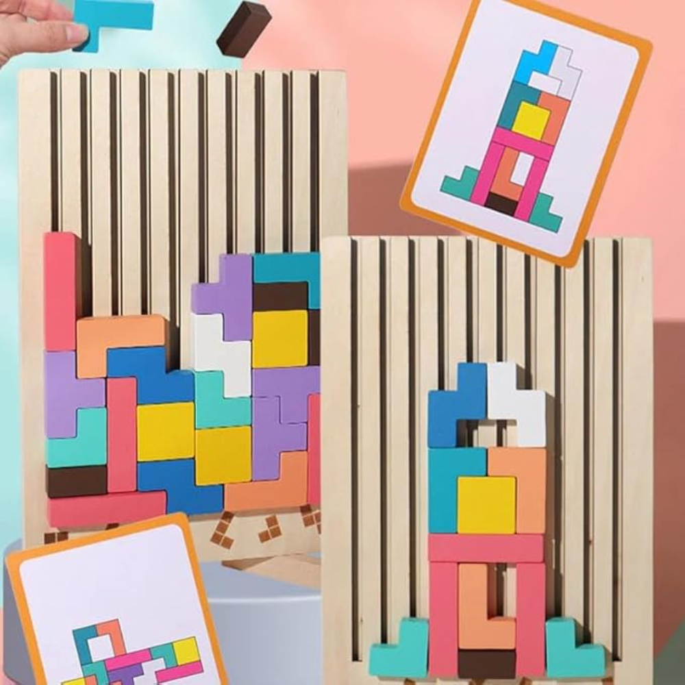 Med sine farverige træbrikker inviterer TetrisPuzzle™ børn til at tænke, skabe og udfordre sig selv. Hver form træner logik, tålmodighed og problemløsning, mens barnet har det sjovt. Ingen skærme, ingen støj – kun ren, lærerig leg.