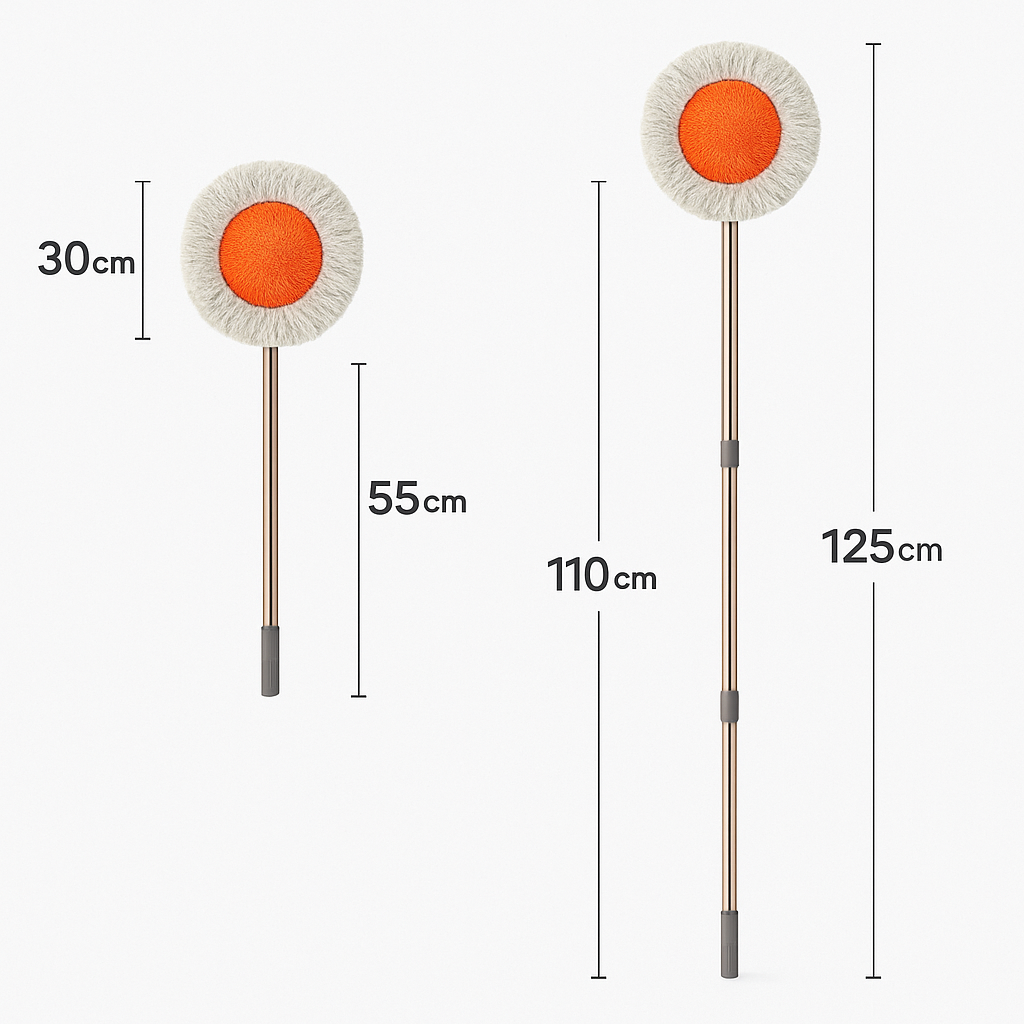 Rengøring skal ikke føles som hård træning. Med denne ultralette, teleskopiske moppe med roterende hoved kan du nemt gøre selv de højeste lofter og dybeste hjørner rene – uden at bøje dig eller bruge en skammel. Det justerbare skaft kan forlænges op til 150 cm, så du når overalt uden at belaste ryg eller knæ.